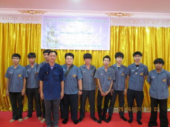 นักเรียนระดับ ปวช.1 แผนกช่างเชื่อมโลหะ ได้เข้าร่วมโครงการอบรมคุณธรรม-จริยธรรม ที่วัดศรีโสดา อ.เมือง จ.เชียงใหม่ วันที่ 29-30 มิถุนายน 2556