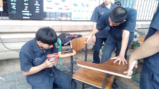 ครูนพดล กำมะหยี่ หัวหน้าแผนกวิชาช่างเชื่อมโลหะ พร้อมด้วยคณะครู และนักเรียนนักศึกษาแผนกช่างเชื่อมโลหะทุกชั้นปี ร่วมทำความดีเพื่อถวายแด่ พระบาทสมเด็จพระปรมินทรมหาภูมิพลอดุลยเดช มหิตลาธิเบศรรามาธิบดี จักรีนฤบดินทร สยามมินทราธิราช บรมนาถบพิตร โดยได้จัดทำ ปรับปรุง ซ่อมแซม เก้าอี้แล็คเชอร์ ที่เสียหายและใช้งานไม่ได้แล้ว สำหรับใช้ในการเรียนการสอน ภายในห้องเรียนของแต่ละอาคารเรียน จำนวน 50 ตัว |