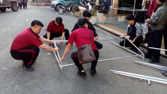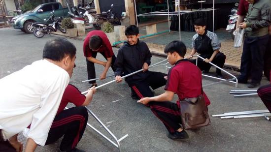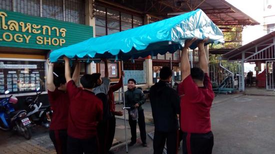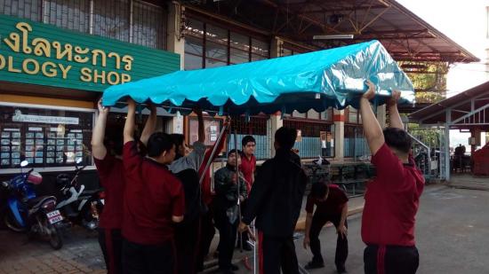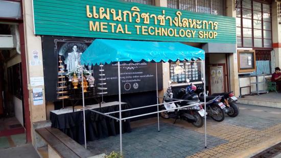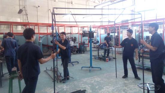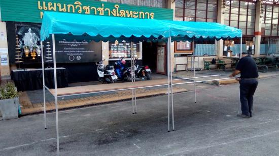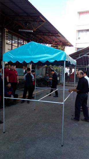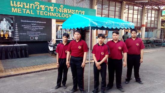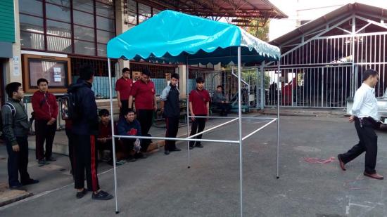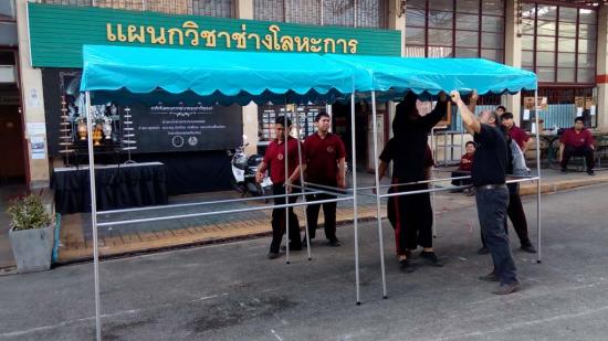 นักเรียน ระดับ ปวช.2 สาขางานผลิตภัณฑ์ แผนกวิชาช่างเชื่อมโลหะ ได้ฝึกปฏิบัติงานทำเต็นท์ แบบถอดประกอบได้ ใน รายวิชางานเชื่อมอาร์กทังสเตนแก๊สคลุม ซึ่งเป็นการบูรณาการในการเรียนการสอน การฝึกปฏิบัติทำชิ้นงาน ซึ่งสามารถนำไปใช้ประโยชน์ได้จริง |