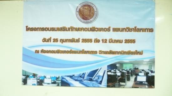 ) แผนกวิชาโลหะการ วิทยาลัยเทคนิคเชียงใหม่ ได้ทำโครงการอบรมเสริมทักษะคอมพิวเตอร์ ประจำปีการศึกษา 2554 เพื่อให้นักเรียน นักศึกษา ระดับ ปวช.1-3 ได้มีความรู้เกี่ยวกับระบบฮาร์ดแวร์ และซอฟแวร์ ของคอมพิวเตอร์ PC และ Note book ดูภาพกิจกรรม.. |