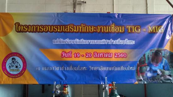 โครงการอบรมเสริมทักษะงานเชื่อม TIG - MIG แก่นักเรียนนักศึกษาแผนกวิชาช่างเชื่อมโลหะ วันที่ 19 - 20 สิงหาคม 2560 ณ แผนกวิช (