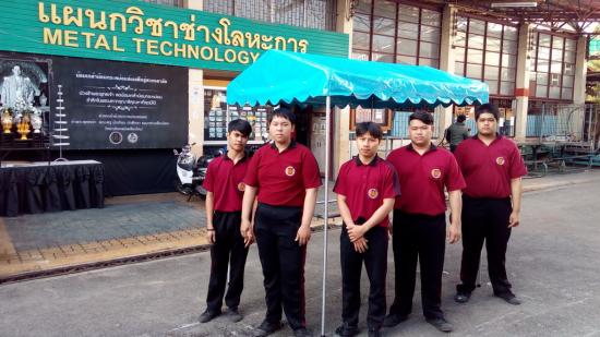 ) ครูนพดล กำมะหยี่ หัวหน้าแผนกวิชาช่างเชื่อมโลหะ พร้อมด้วยคณะครู และนักเรียนนักศึกษาแผนกช่างเชื่อมโลหะทุกชั้นปี ร่วมทำความดีเพื่อถวายแด่ พระบาทสมเด็จพระปรมินทรมหาภูมิพลอดุลยเดช มหิตลาธิเบศรรามาธิบดี จักรีนฤบดินทร สยามมินทราธิราช บรมนาถบพิตร โดยได้จัดทำ ปรับปรุง ซ่อมแซม เก้าอี้แล็คเชอร์ ที่เสียหายและใช้งานไม่ได้แล้ว สำหรับใช้ในการเรียนการสอน ภายในห้องเรียนของแต่ละอาคารเรียน จำนวน 50 ตัว ดูภาพกิจกรรม.. |