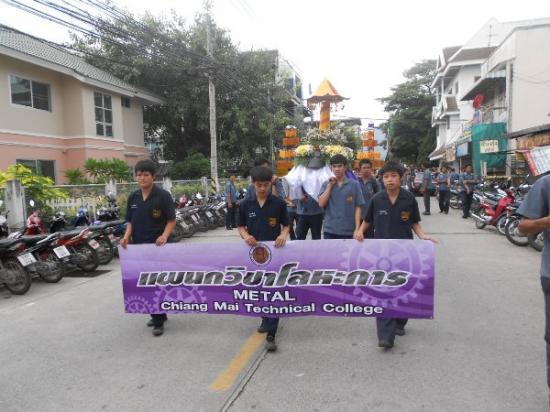 ) เมื่อวันที่ 2 สิงหาคม 2555 คณะครูและนักเรียน นักศึกษา แผนกโลหะการ ได้ร่วมประเพณีแห่เทียน วันเทศการเข้าพรรษา ประจำปี 2555 ที่วัดล่ามช่าง อ.เมืองเชียงใหม่ จ.เชียงใหม่ ดูภาพกิจกรรม.. |